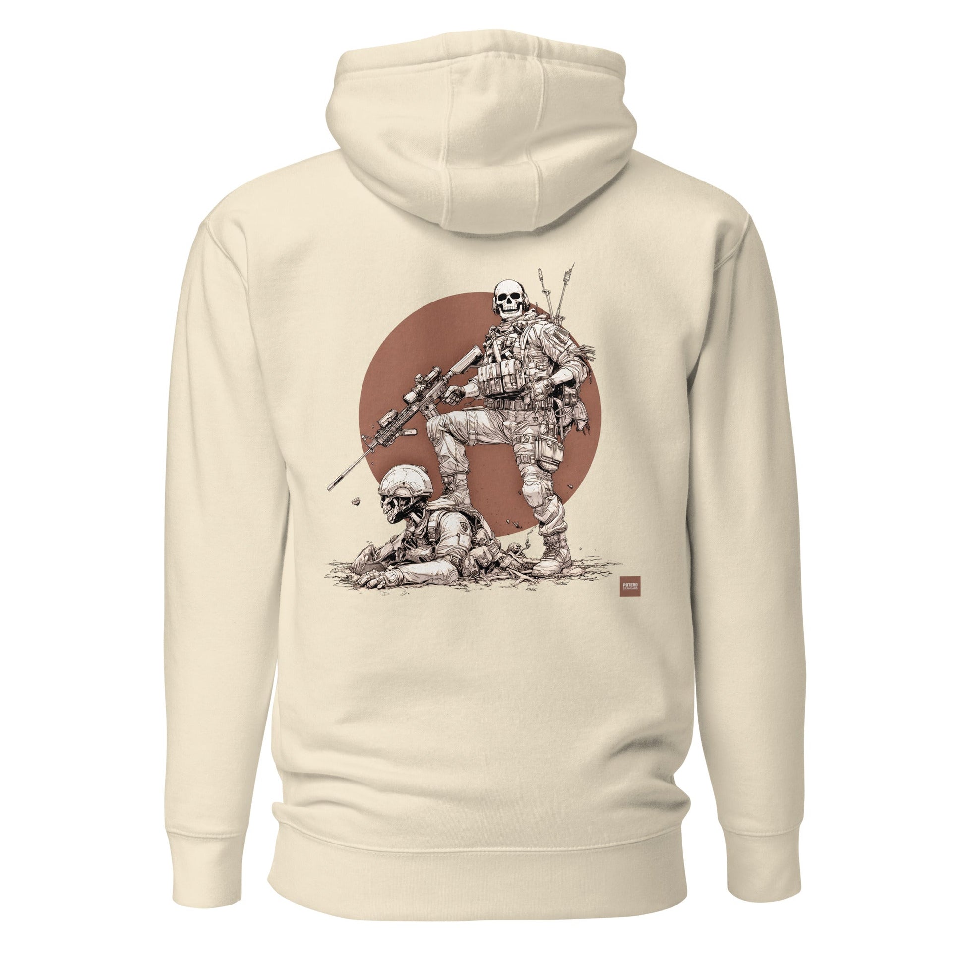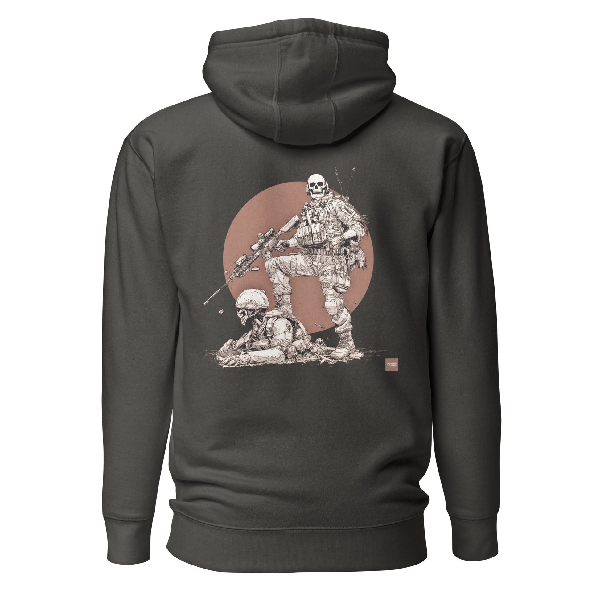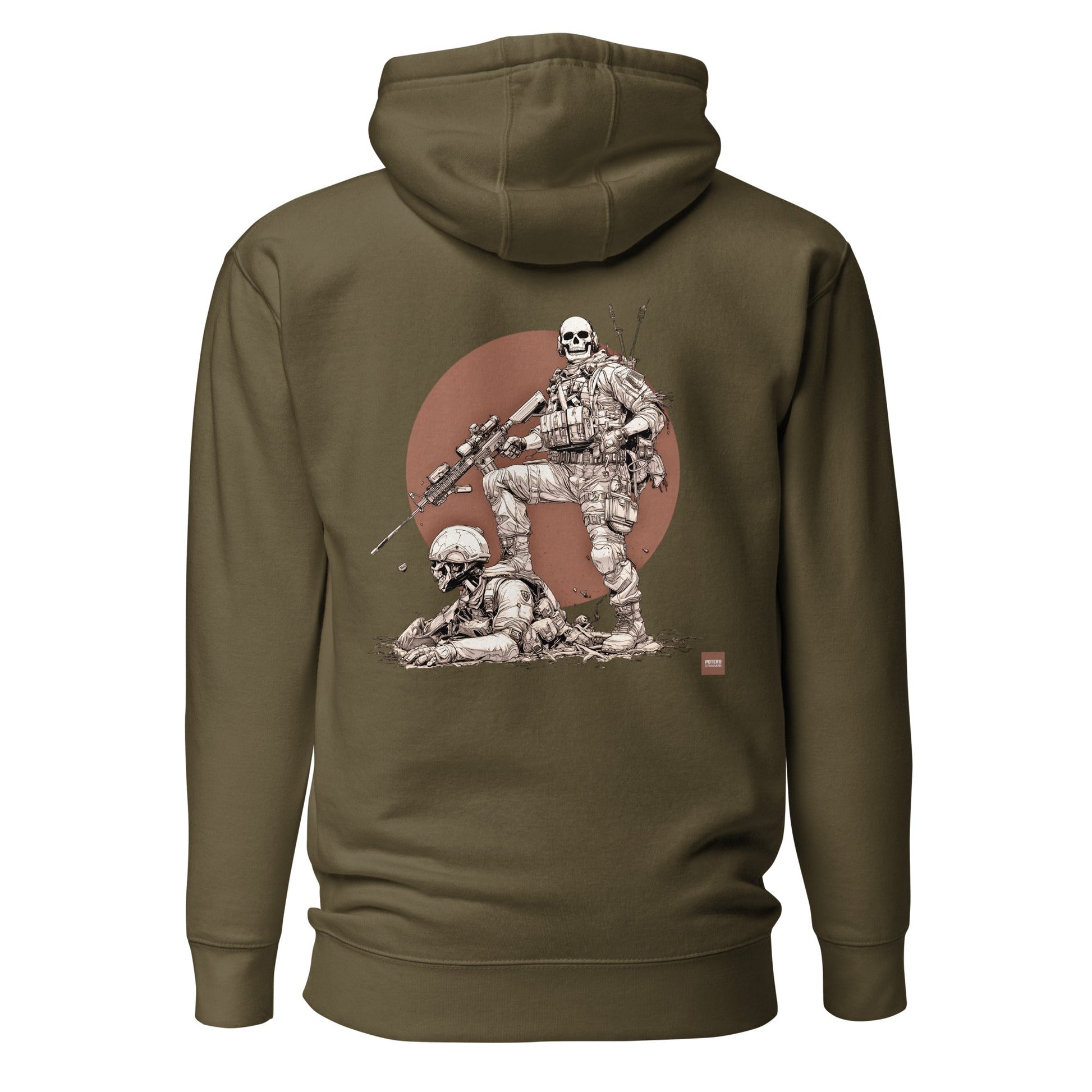 Sotiminen on makaaberia touhua. Silti pitää jokainen päivä rakentaa moraalin varaan. Happy hunting symboloi tätä taisteluviettiä.